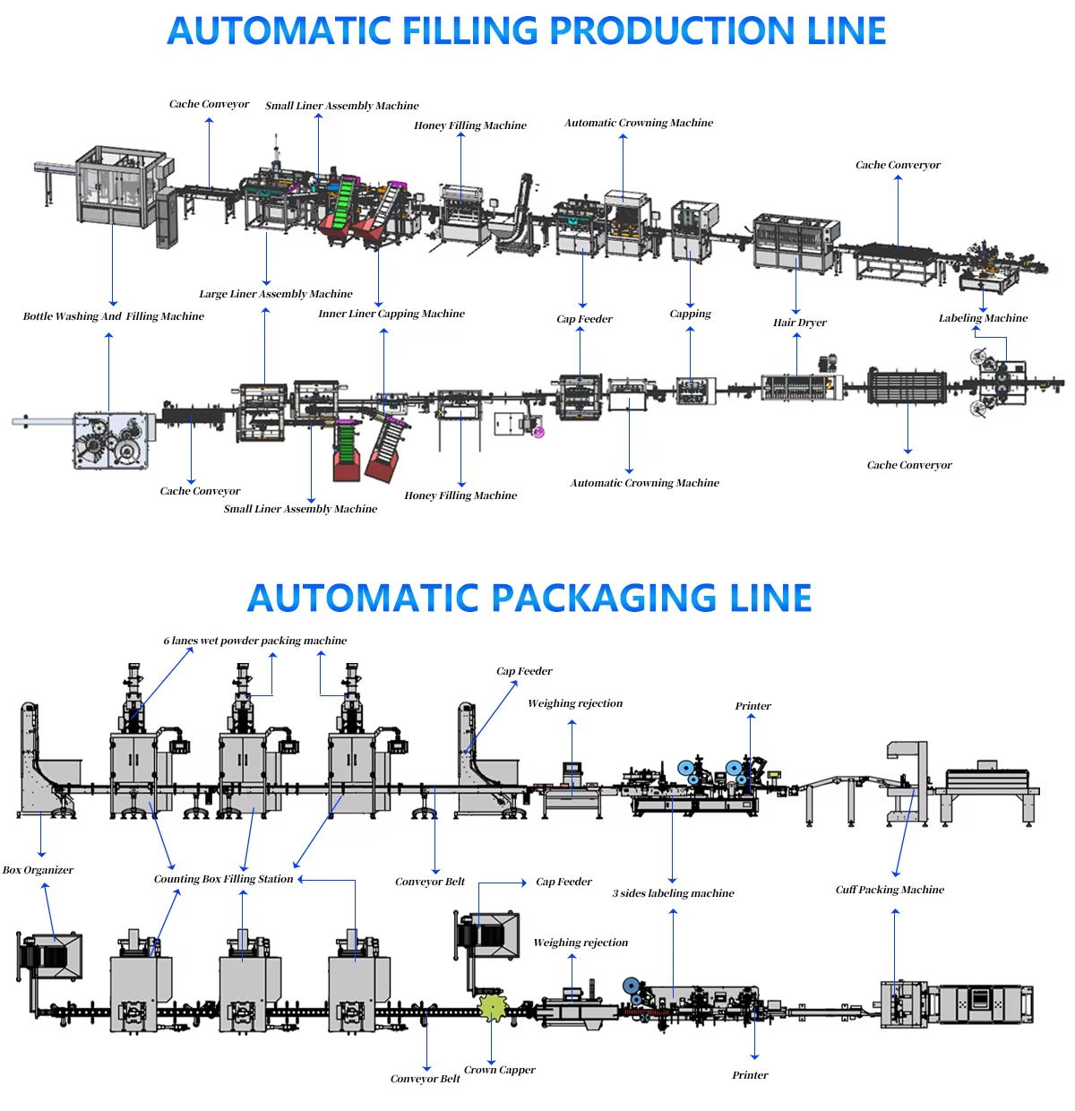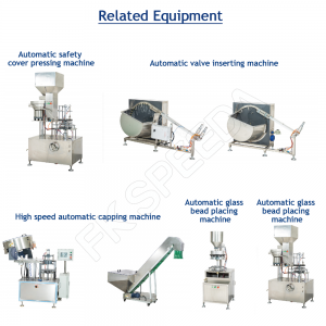 The production line has the characteristics of high precision and highefficiency. lt can be filled with international 1 inch filling specifications, tinplate,aluminum pipe, and suitable for filling medium oil, water, emulsion solvent andother medium viscosity materials, lt is suitable for filling various kinds of propel-lants such as DME, LPG, 134a, N2, c02 and so on. lt can be used for liquid fillingin chemical, daily chemical, food and pharmaceutical industries.