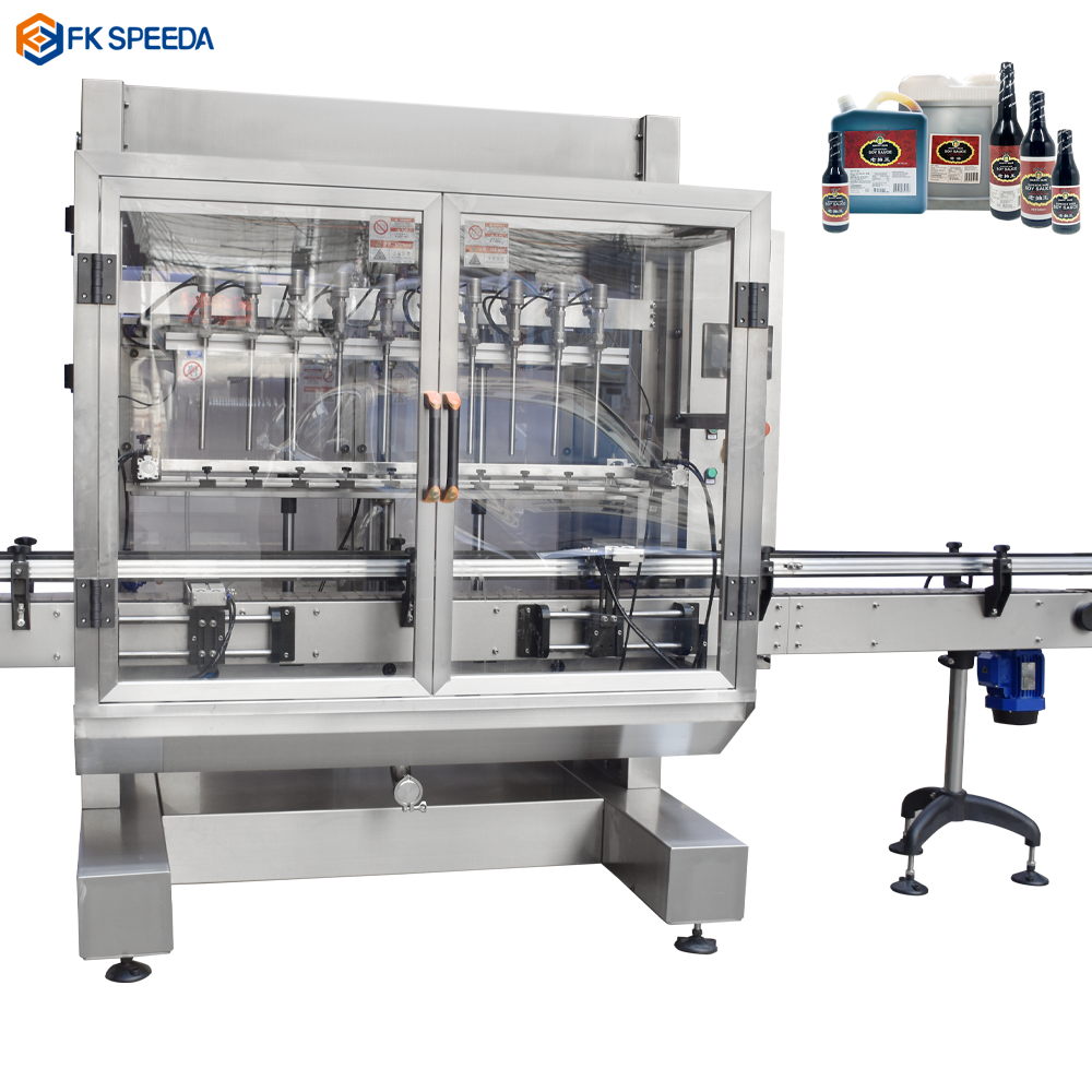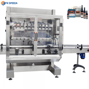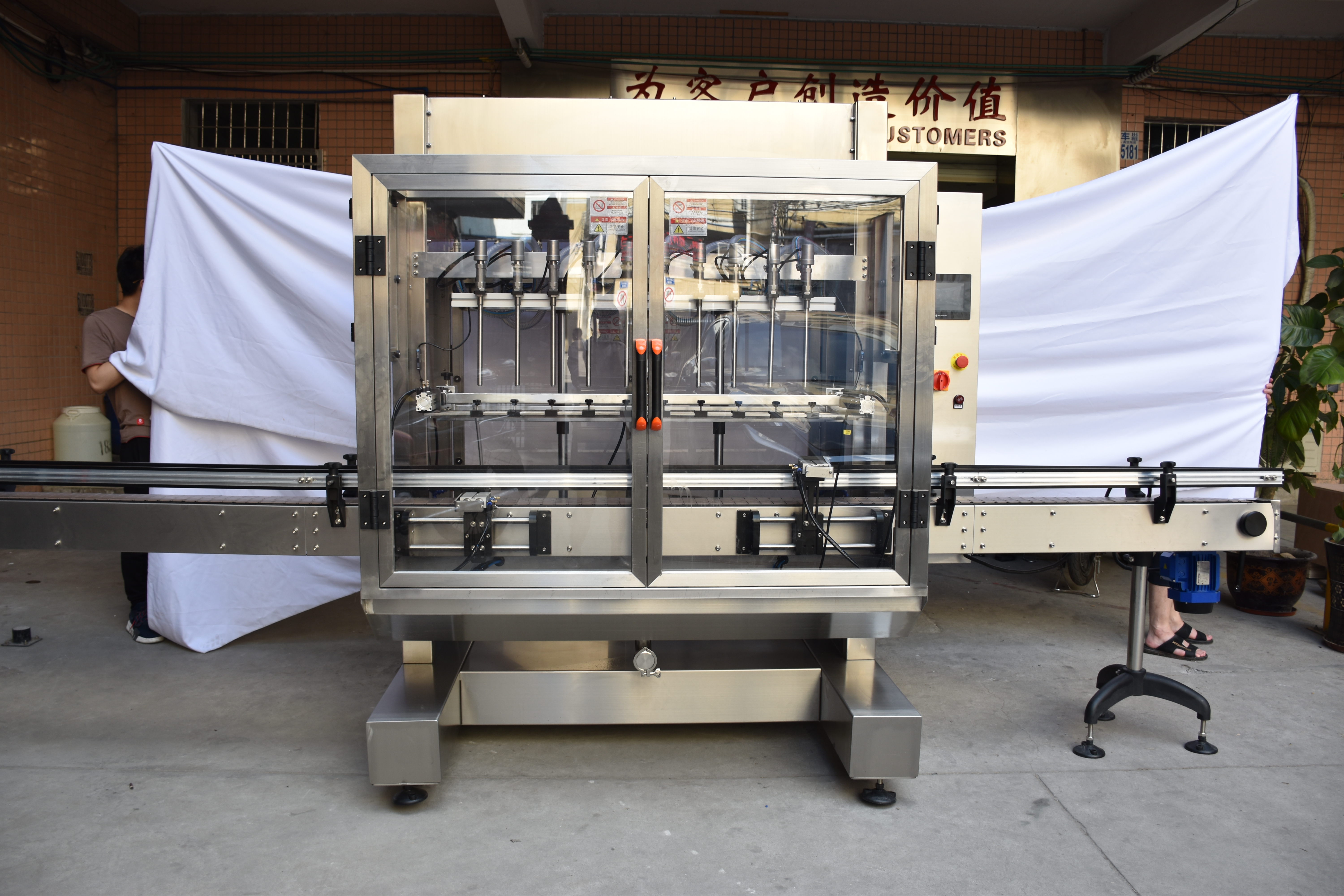 Automatic liquid filling machine Suitable for filling containers of different specifications. The filling specifications can be switched within a few minutes. The filling cycle is short and the production capacity is high. The replacement of filling specifications does not need to add spare parts, and can be completed by adjustment. Users can select the filling quantity according to their own production capacity to determine the number of filling heads. Touch-operated color screen can display production status, operating procedures, filling methods, etc. , The screen is intuitive, easy to operate, and easy to maintain. Each filling head is equipped with a bottle mouth setting to ensure accurate filling of the material.