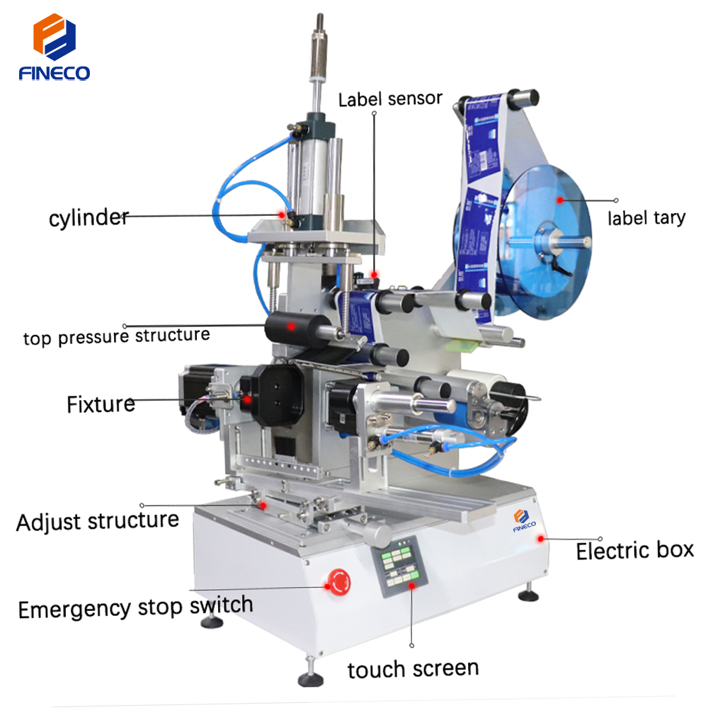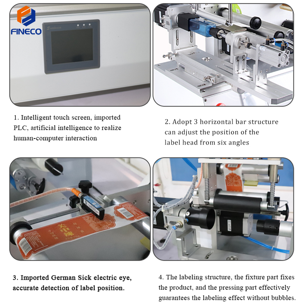 ④ FK616 1.Adjust method is simple and only needs to move the height of the pressure wheel. 2.Adjust the mold position of the pressing product and the position of the sensor. The Adjust process is less than 10 minutes.The labeling accuracy is high, and the error is difficult to be seen by the naked eye. It is the good choice for products with less mass production.