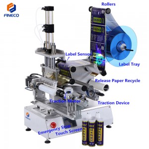 1.Press the switch after the product is placed in the designated position, the machine will clamp the product and pull-out the label.