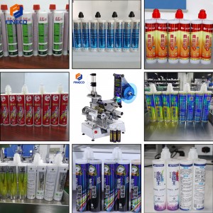 ④ FK616A Adjust method is simple: 1.Adjust the height of the pressing plate and the position of the cylinder according to the size of the product,let the plate presses the product. 2.Adjust the position of sensor let a piece of label can be entire come out.3.Adjust the position of the product and the first stage labeling length, let the first stage label can be pressed between the two tubes of the produce by the press plate, the error of labeling is not visible to the naked eye , it is a good helper of the sealant labeling.