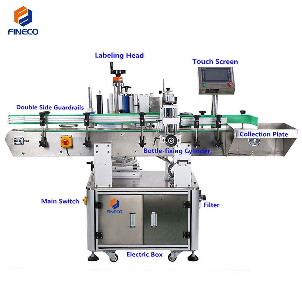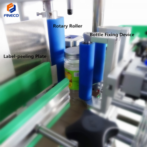 Labeling Process: Bottles are transmitted from the filling line→Bottle- separating Device→ Bottles are separated one by one to ensure labeling time for each bottle →