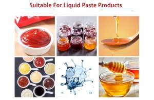 Inneal pacaidh sachet/bata leaghaidh ioma-shreath fèin-ghluasadach, tha e freagarrach airson iomadh seòrsa de thoraidhean leaghaidh, leithid ketchup, seoclaid, mayonnaise, ola ollaidh, sabhs chili, mil, deochan, jelly, cungaidh-leigheis, seampù, uachdar, lotion, beul-uisge; cungaidhean maise; sabhs; ola; Sùgh mheasan; deoch; leaghanmsaa.