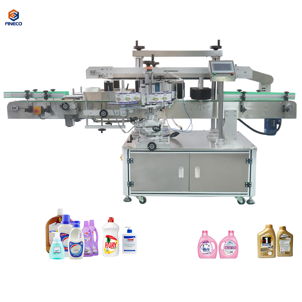 Double sides labeller machine is designed for labeling different shape flat or plane curved surface bottles, normal paper sticker or transparent sticker are both suitable.Wiedly used in big size bottle, detergent soap bottle, dishwashing bottle jar, nuts pet bottle, car washing liquids bottle, etc. Simple to operate and debug . It needs to connect with air compressor and electric power , the main components are brands to ensure the labeling stability and accuracy .